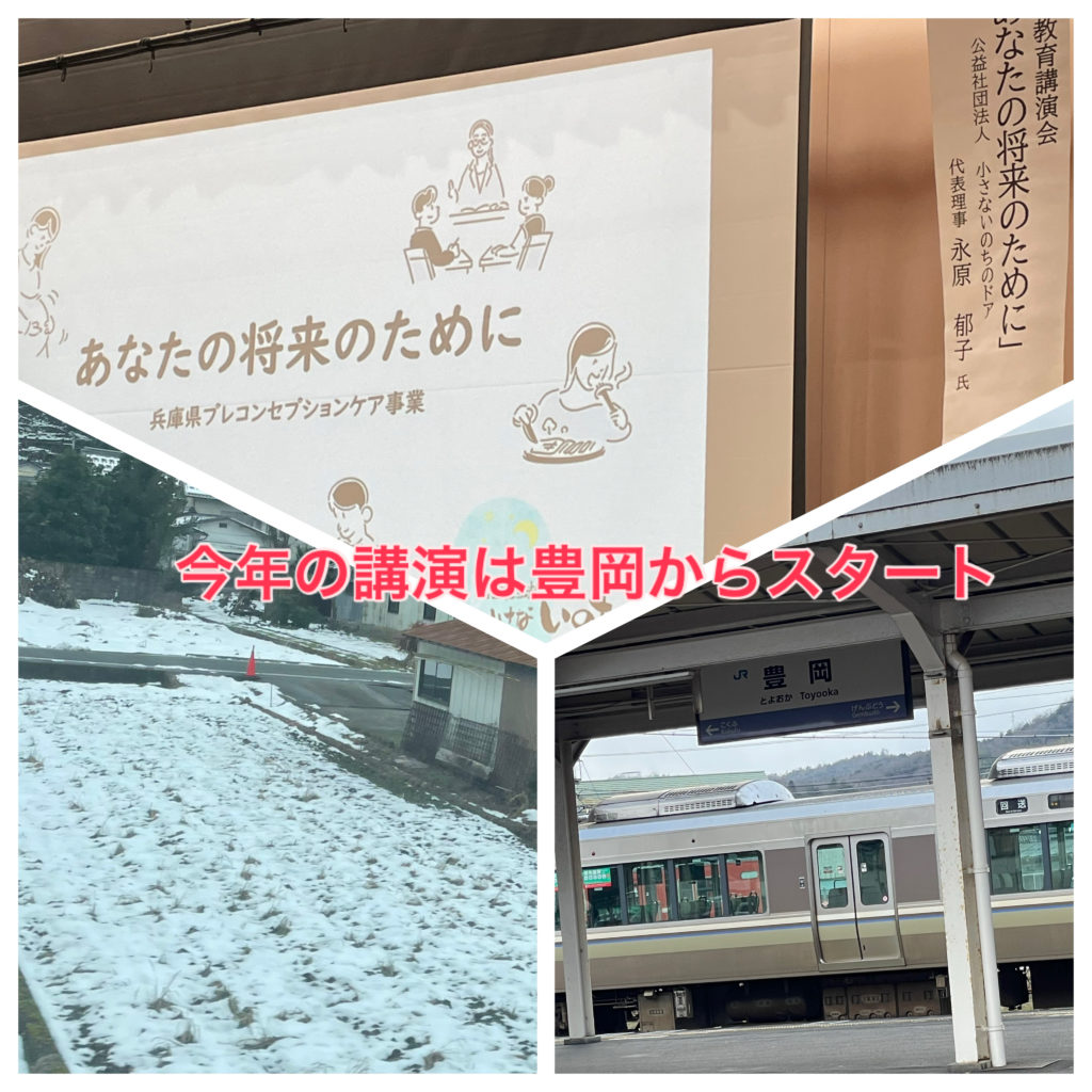 昨年の最後の講演も豊岡の高校でしたが、今年スタートも豊岡でした。雪が残る豊岡で熱く語ってきました💕後、ご好意で校長先生と学食いただきました♪♪お味噌汁もミンチカツも煮物もとっても美味しかった💕朝7時過ぎに出て夕方5時半帰宅。ちょっと疲れました~